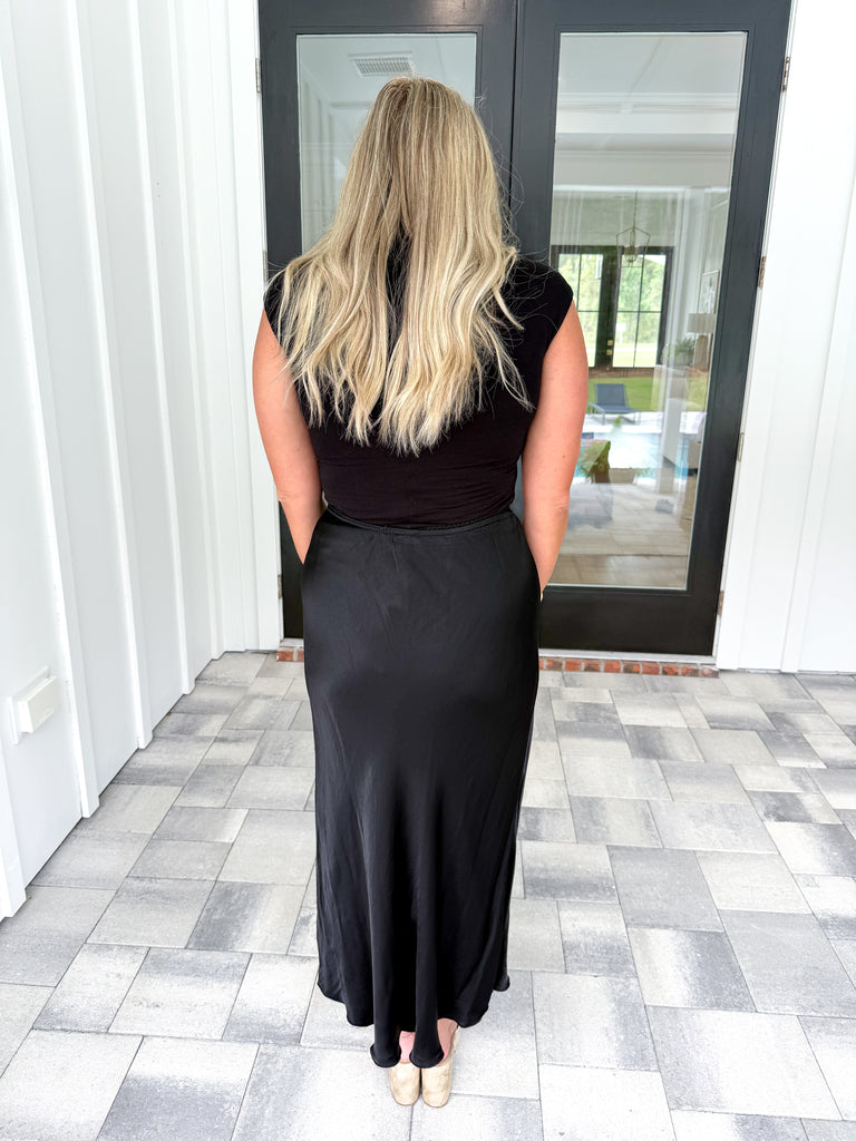 Black Satin Midi Skirt