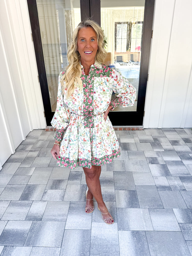 - Elevate your everyday wardrobe with this sophisticated shirt dress, featuring striking contrast floral print paneling that draws the eye. The structured long sleeves provide polished coverage, while the adjustable waist tie creates a flattering silhouette that transitions seamlessly from office to weekend. Thoughtfully designed for versatility, this piece layers beautifully over basics or stands alone as a statement piece. Perfect for those who appreciate refined details and timeless style!