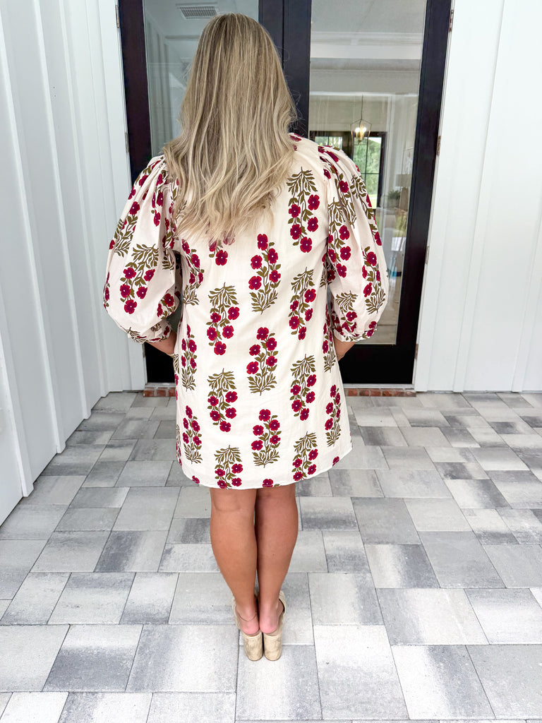 - This floral pattern dress combines elegance and comfort with its V-neck and band collar design. Featuring ¾ band puff sleeves and practical side pockets, it offers a refined silhouette with functional details. Fully lined for a smooth fit, this mini dress is a versatile choice for both casual and dressier occasions!