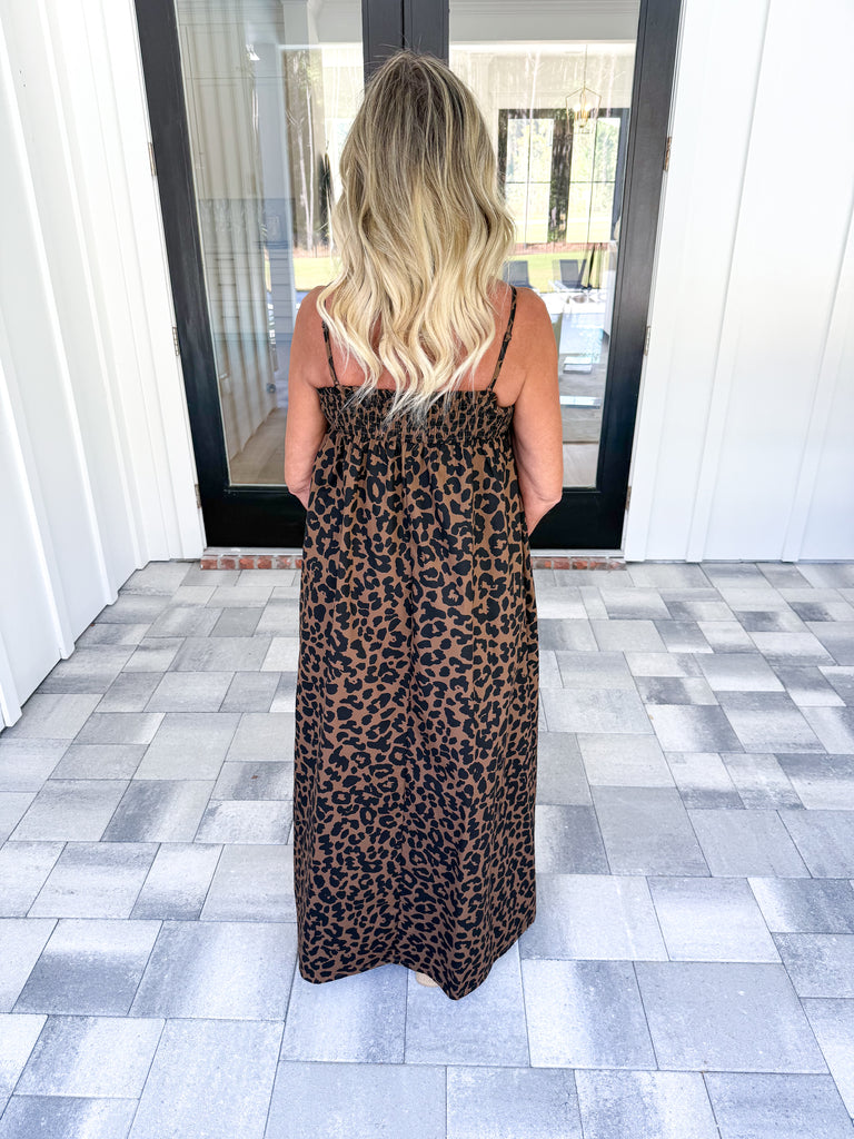 - The Leopard Maxi combines sophisticated style with effortless comfort. Featuring a flattering square neckline and adjustable straps, it offers a customizable fit that enhances your silhouette. Its flowy fabric drapes gracefully, ensuring ease of movement and a refined look ideal for both casual outings and elegant events!
