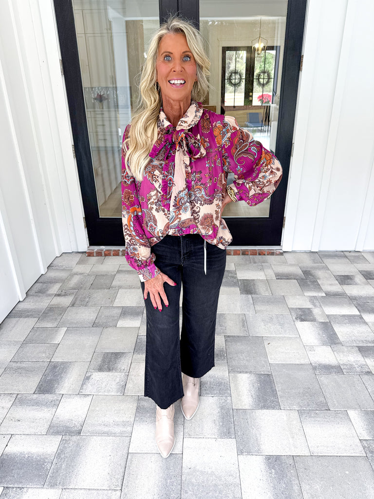 Comfort stretch denim, high rise waist, raw hem, ankle length, wide jeans!
