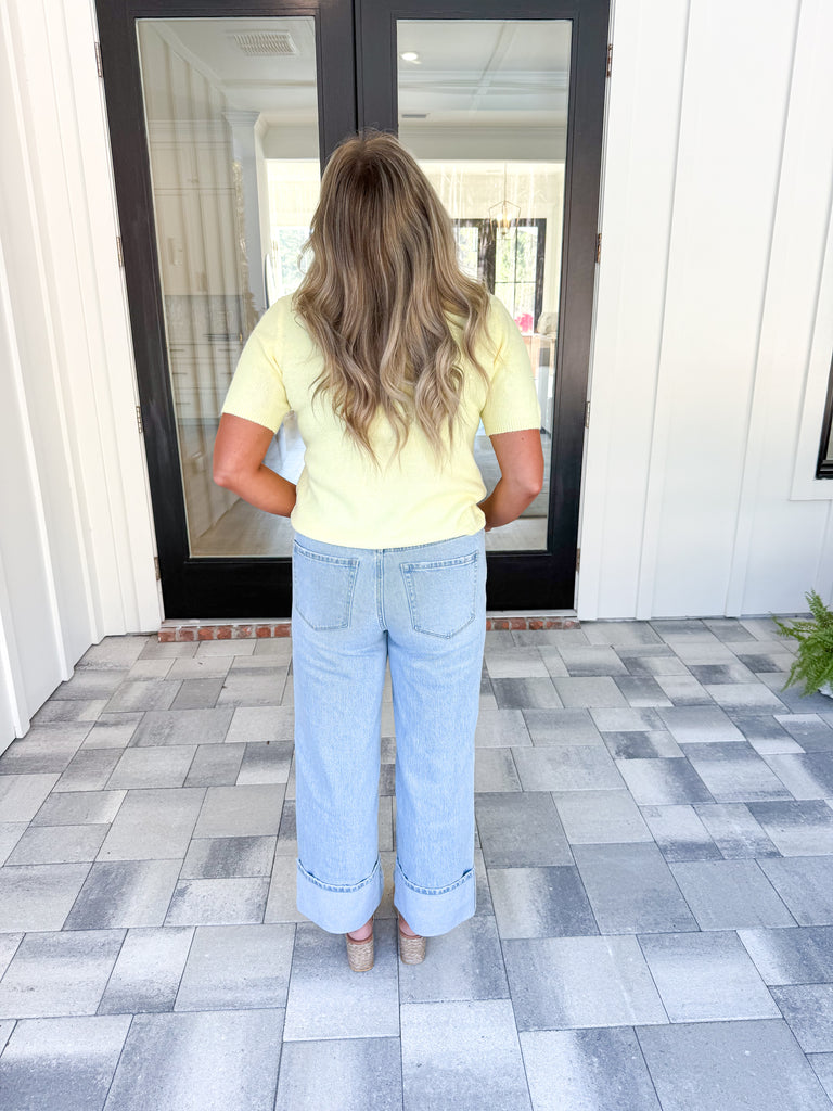 - This yellow sweater combines effortless style with versatile layering potential. The button-down front and relaxed fit create a laid-back silhouette that works equally well as a standalone piece or layered over tanks and dresses. Subtle ribbed edges add refined structure without sacrificing comfort, while the lightweight yet cozy fabric makes it an ideal transitional piece for any season. A wardrobe essential that bridges casual and polished aesthetics!